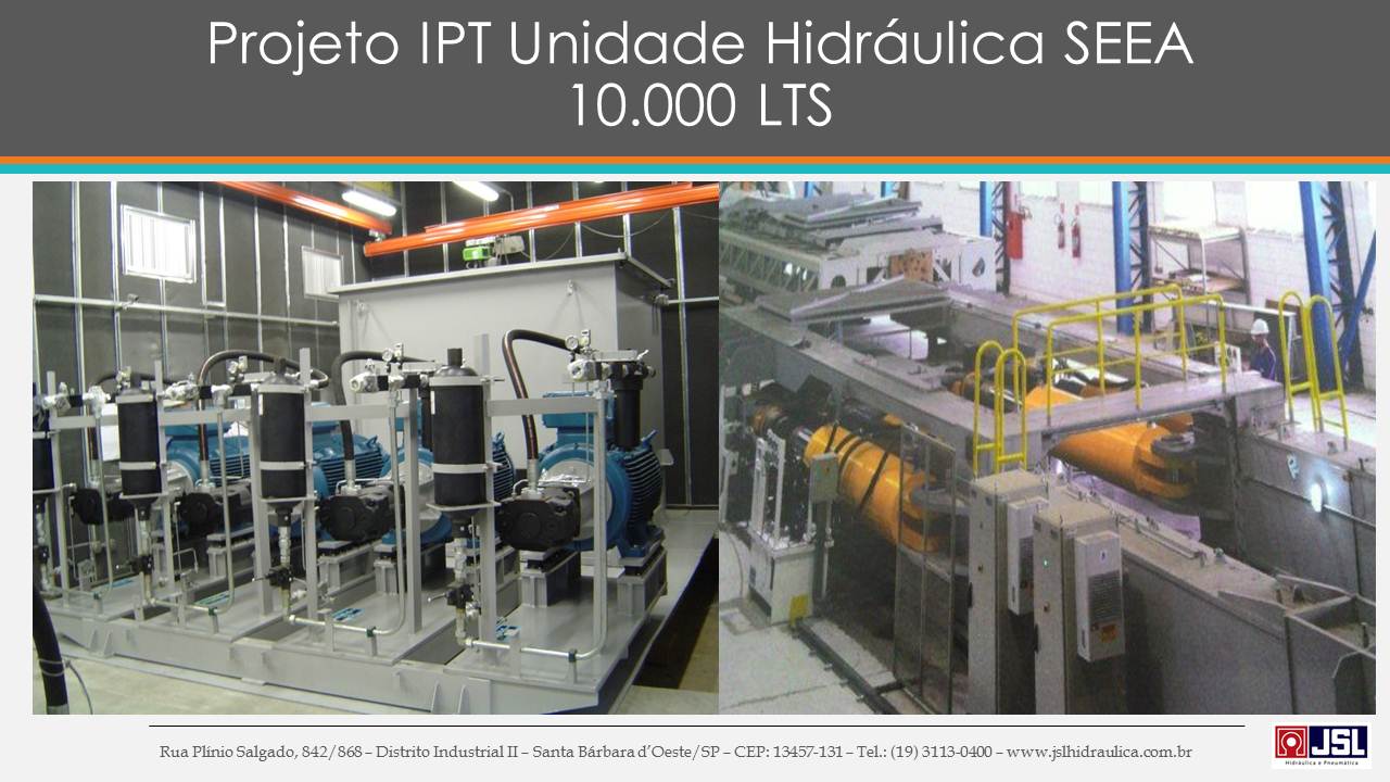 E a JSL teve uma participação significante neste projeto, pois a CENTRAL HIDRÁULICA, o coração operacional deste equipamento, foi projetado pela nossa equipe de Engenheiros concorremos com empresas de renome mundial e o nosso projeto foi o contemplado, pois atendeu os requisitos Técnicos e Comerciais exigidos pelos Engenheiros do IPT (INSTITUTO DE PESQUISA E TECNOLOGIA).